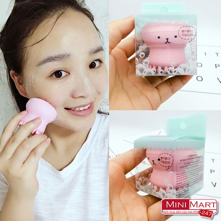Miếng rửa mặt hình em bạch tuộc rất là đáng yêu luôn. Bạn nào mà nhiều mụn cám hoặc da kiểu bị khô ráp í thì chịu khó rửa mặt bằng mấy cái kiểu dụng cụ này vào, đầu massa lấy được hết mụn cám luôn nhé các bạn sẽ không phải lột mụn nữa đâu, hơn nữa là massa mỗi ngày sẽ giúp lưu thông mạch máu nè, không còn tí da chết nào trên mẹt nè, lúc đánh kem nền k bị bở bở bong mốc kinh dị nữa nè 😋.