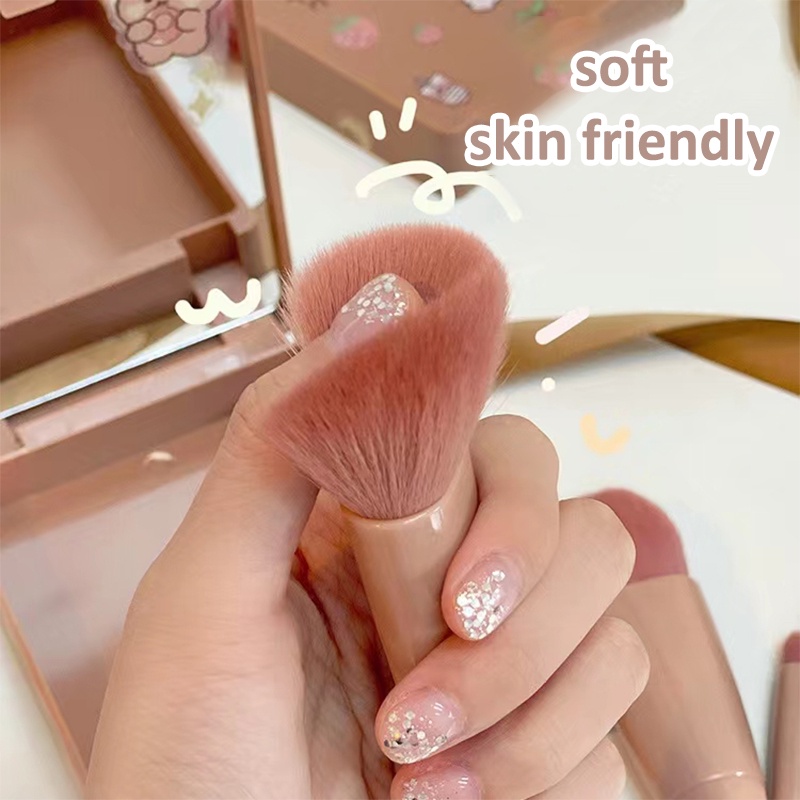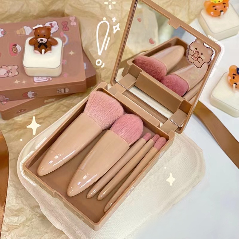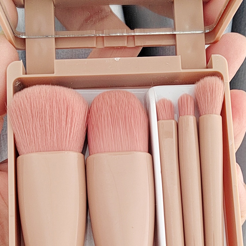 Bộ 5 cọ trang điểm nhỏ 5 có một chiếc gương, một cọ trang điểm lông mềm lớn mang theo du lịch