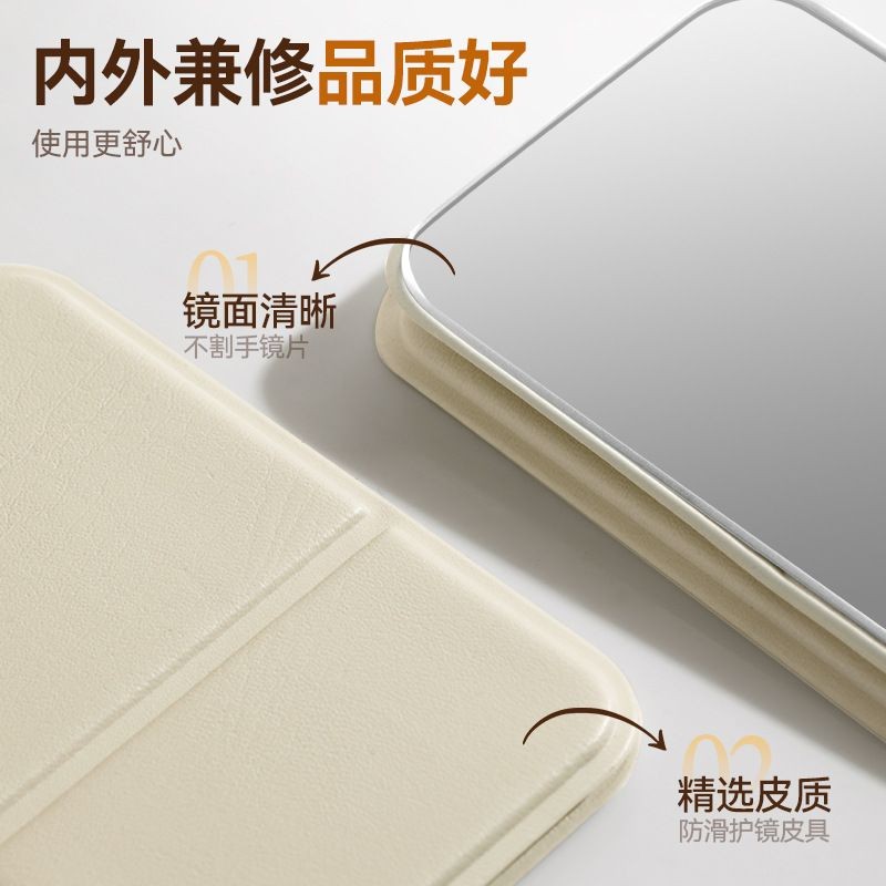 Gương soi mini cầm tay bỏ túi mặt lưng da PU siêu xinh có thể gấp gọn 10.8x7cm