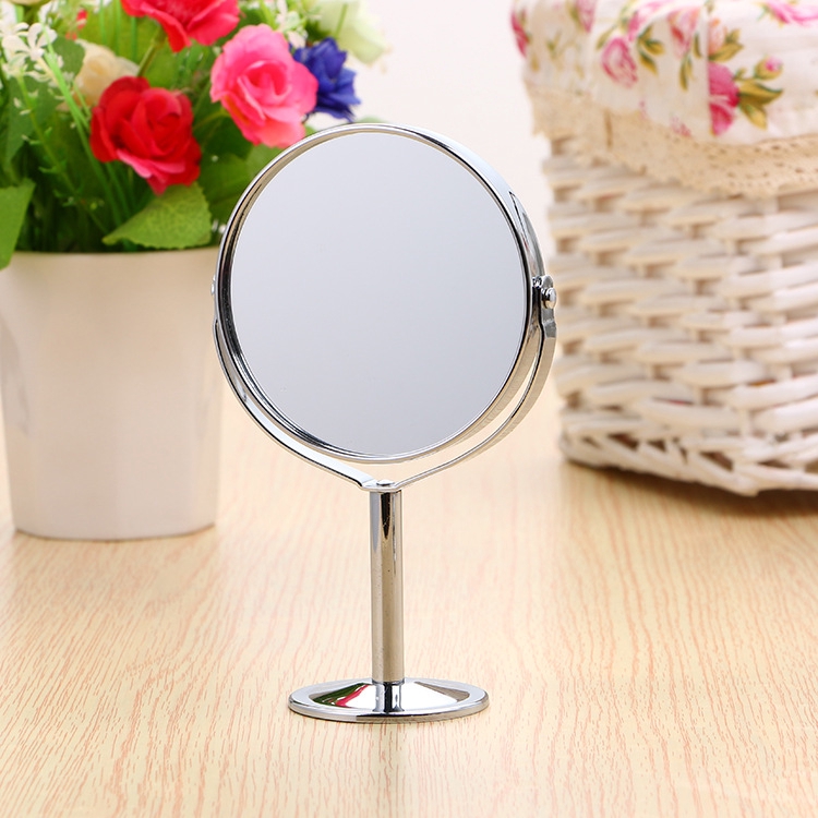 Gương tròn trang điểm 2 măt gương. Kính chất lượng và khung được làm bằng inox không rỉ luôn sáng bóng.