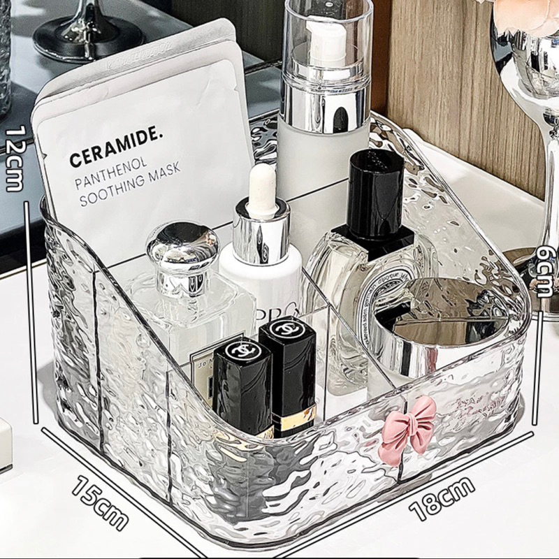 Khay Đựng Mỹ Phẩm Trong Suốt Có Chổ Để Son, Khay Đựng Đồ Trong Suốt Thiết Kế Hoa Văn Nhiều Ô Để Bàn