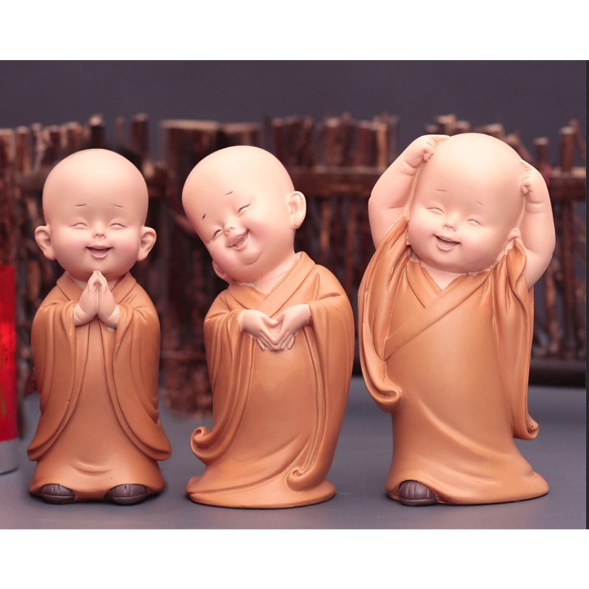 Tượng chú tiểu yêu đời 6cm - bán lẻ từng tượng biểu cảm trang trí bàn làm việc siêu đáng yêu