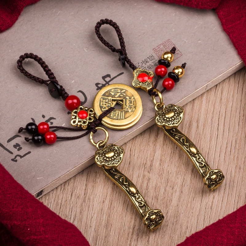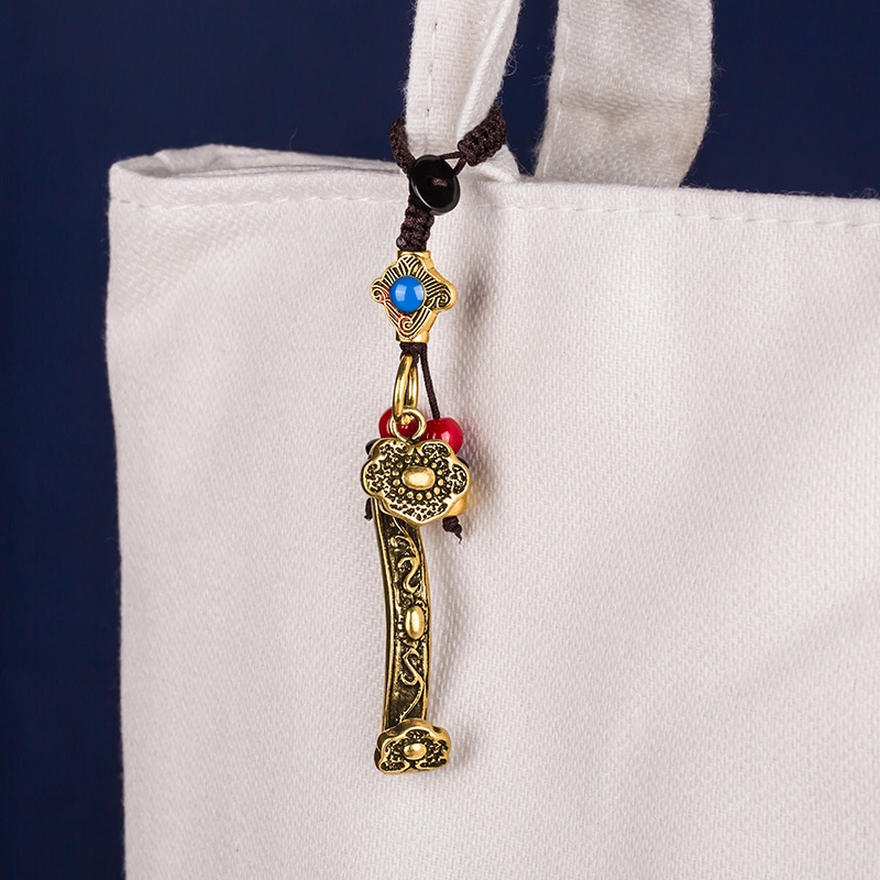 Móc khóa ngọc như ý may mắn, chất liệu đồng thau may mắn bền đẹp