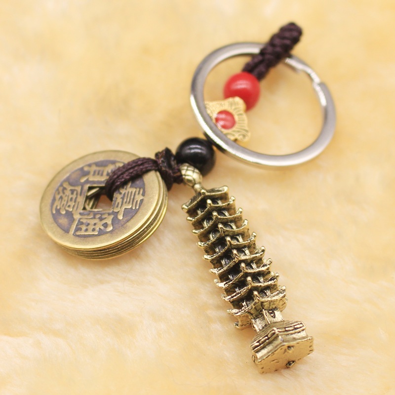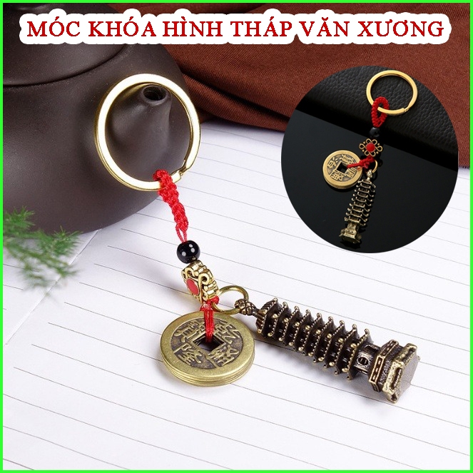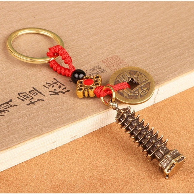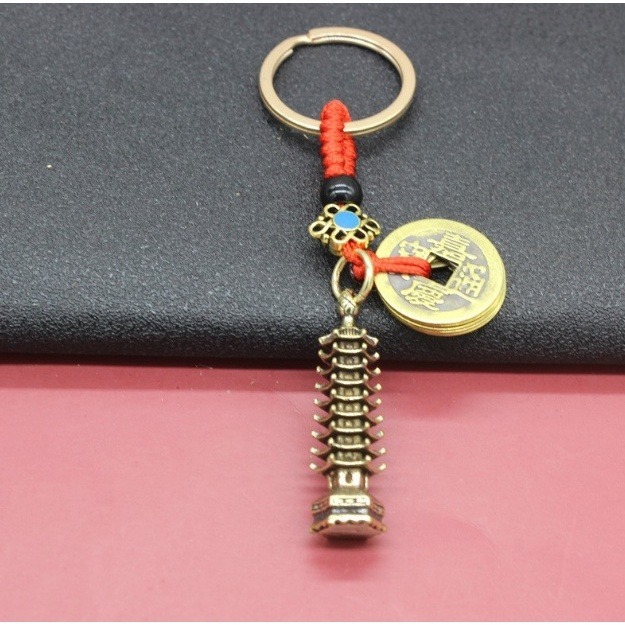 Móc Khoá Phong Thuỷ Hình Tháp Kèm Đồng Xu Trang Trí Sang Trọng