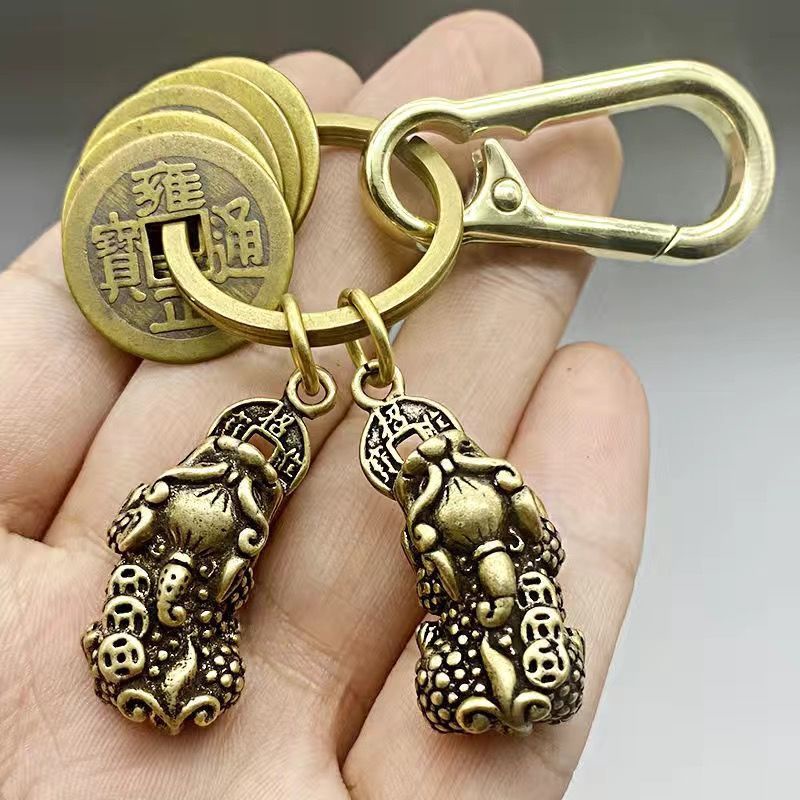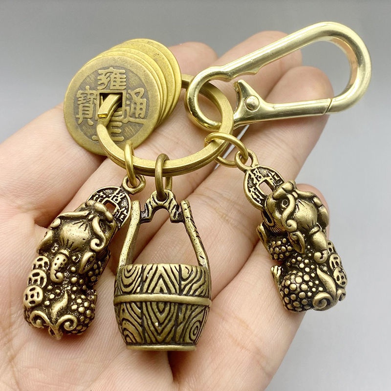 Móc Khóa Trang Trí Phong Thủy Bằng Đồng Thau Thần Tài Chiêu Tài
