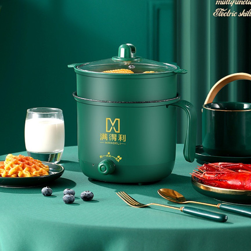 Nồi Lẩu Điện Đa Năng 2 NẤC NHIỆT Kèm Giá Hấp Có Tay Cầm 18cm, Nồi Lẩu Hấp Mini 2 Tầng Cao Cấp
