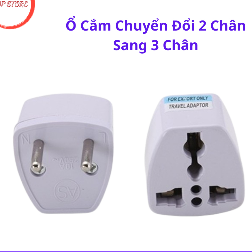 Đầu Chuyển Đổi 3 Chấu, Phích Cắm Điện 3 Chấu Sang 2 Chấu