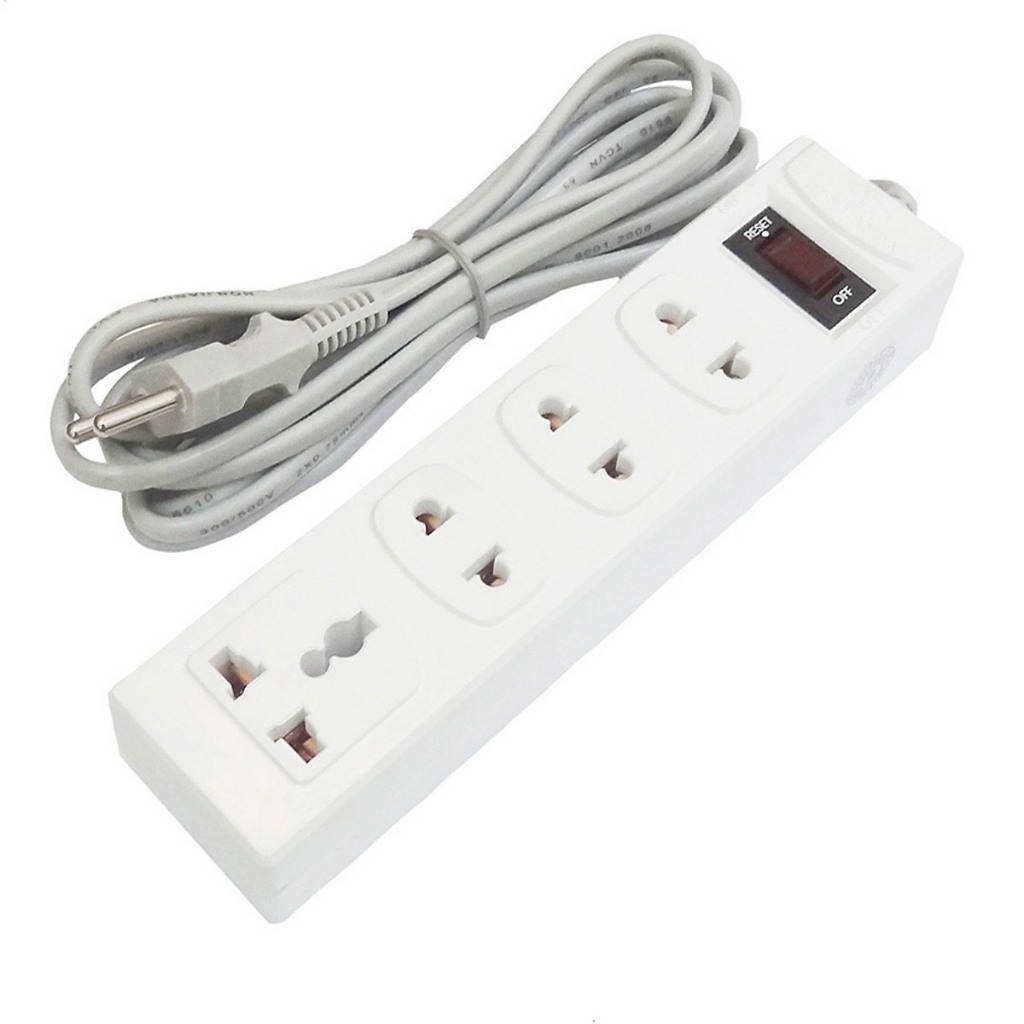 Ổ Cắm Điện Chịu Tải- 4 cổng Dây Dài 3M – 2200W – Có Công Tắc (TRẮNG DÀI)