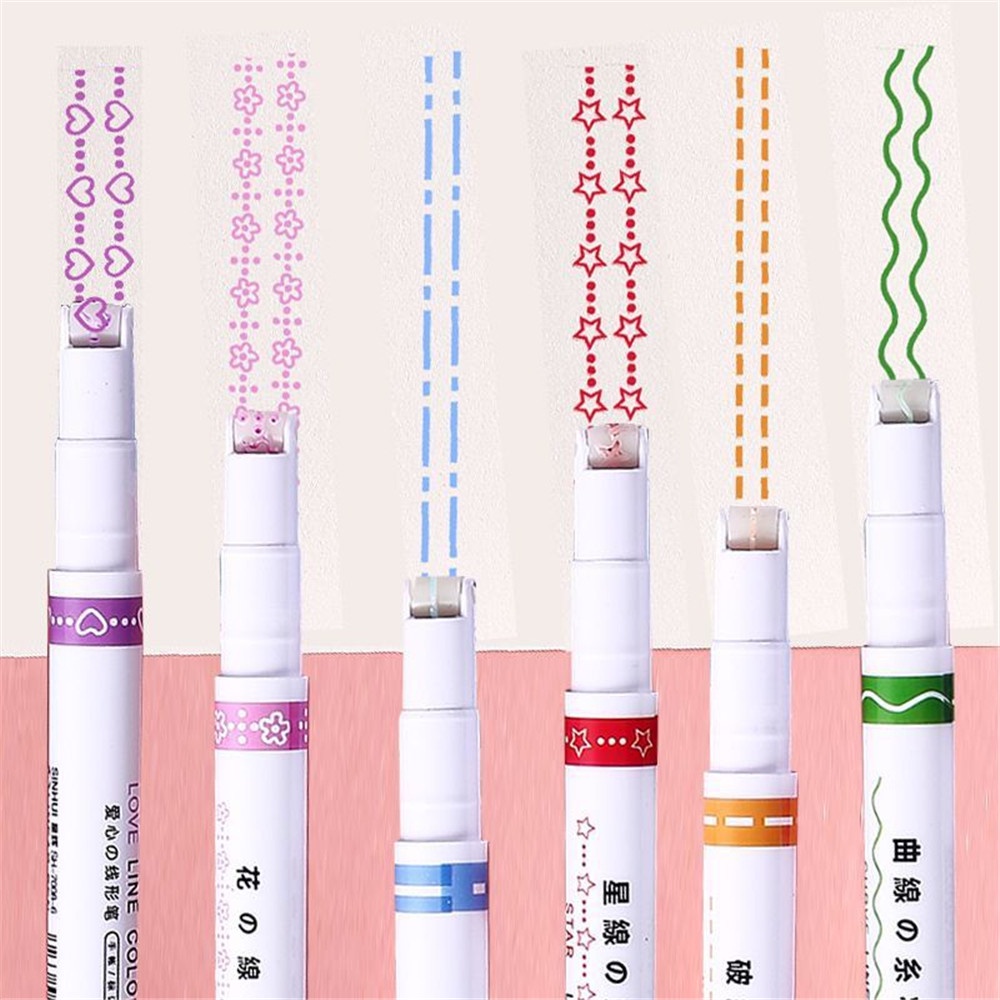 Bộ 6 Bút Đánh Dấu Đầu Lăn tạo kiểu đường cong gợn sóng nhiều màu sắc nhiều hình xinh xắn