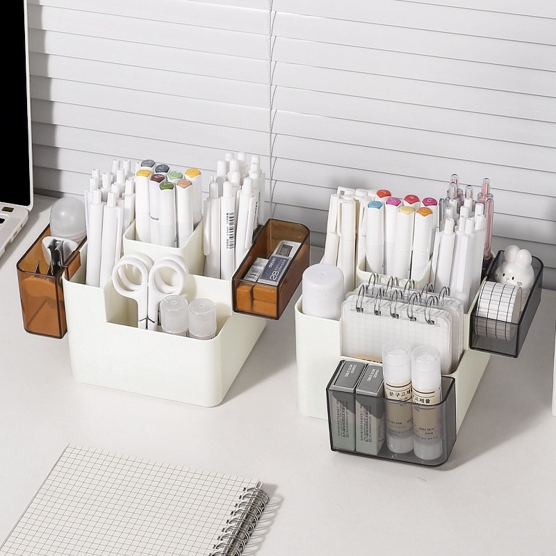 Kệ Đựng Bút Đa Năng 12 Ô Có Ngăn Kéo Nhựa – Hộp Đựng Đồ Dùng Học Tập, Văn Phòng Tiện Lợi