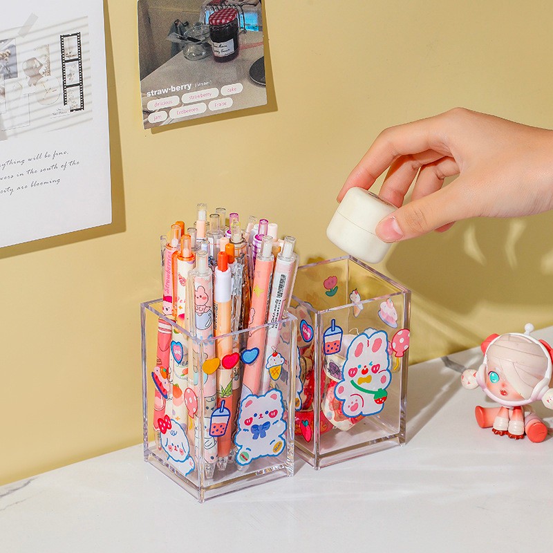 Ống đựng bút trong suốt để bàn, kệ đựng bút tiện dụng đa năng cho học sinh